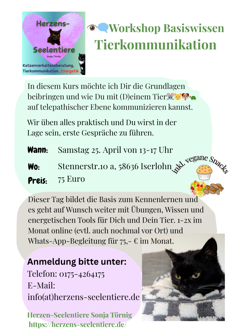 Danke an alle TeilnehmerInnen meines Basiskurses zur Tierkommunikation am 22.03.2026 für den phantastischen Nachmittag. Ihr seid großartig🙏💫🦄 !